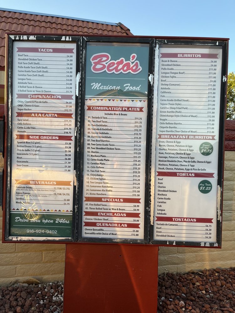 Welcome to Beto’s Tacos, a fast-food Mexican restaurant located in Sacramento, CA. Offering a wide range of amenities such as delivery, takeout, vegan options, and wheelchair accessibility, Beto's Tacos ensures a convenient dining experience for all customers. From their signature Beto's Special to the flavorful Carne Asada Fries and refreshing Aguas Frescas, the menu caters to a variety of tastes. Customer reviews rave about the generous portions, friendly staff, and the option for 24-hour drive-thru service. Whether you're craving traditional tacos or innovative dishes like the Shrimp Cocktail, Beto's Tacos is sure to satisfy your appetite. Don't miss out on this hidden gem for a delicious and fulfilling dining experience.